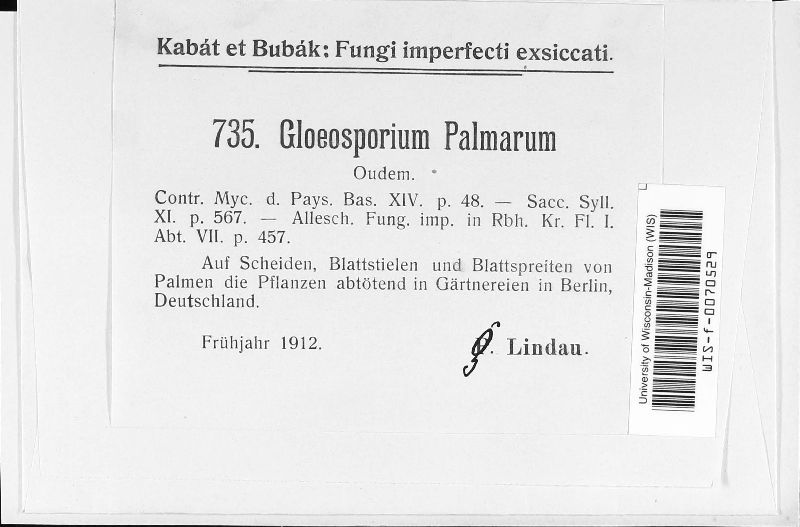 Gloeosporium palmarum Oudem.