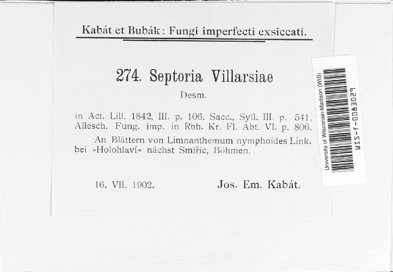 Septoria villarsiae Desm.