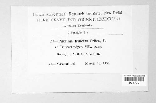 Herbarium Crypt. Ind. Orient. 'Series' 1 (Uredinales) #27