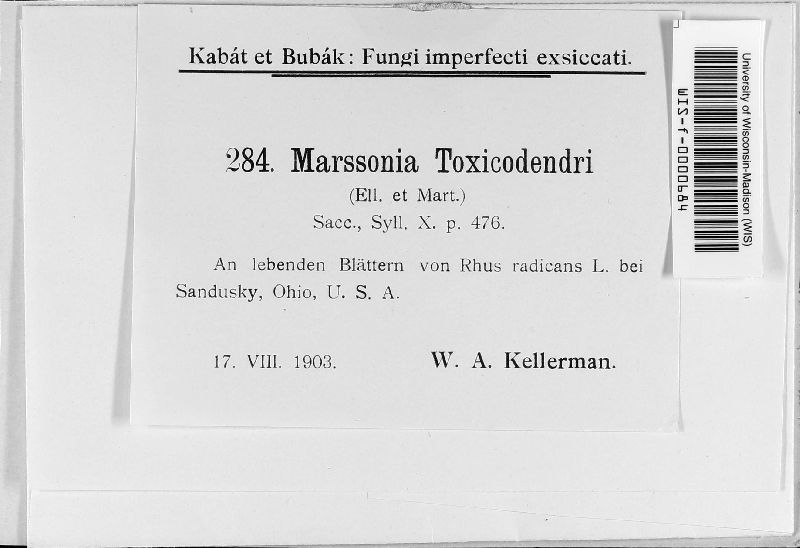 Marssonia toxicodendri (Ellis & G. Martin) Sacc.