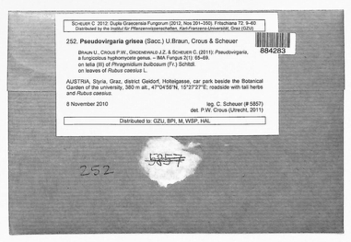 Pseudovirgaria grisea (Sacc.) U. Braun, Crous & Scheuer