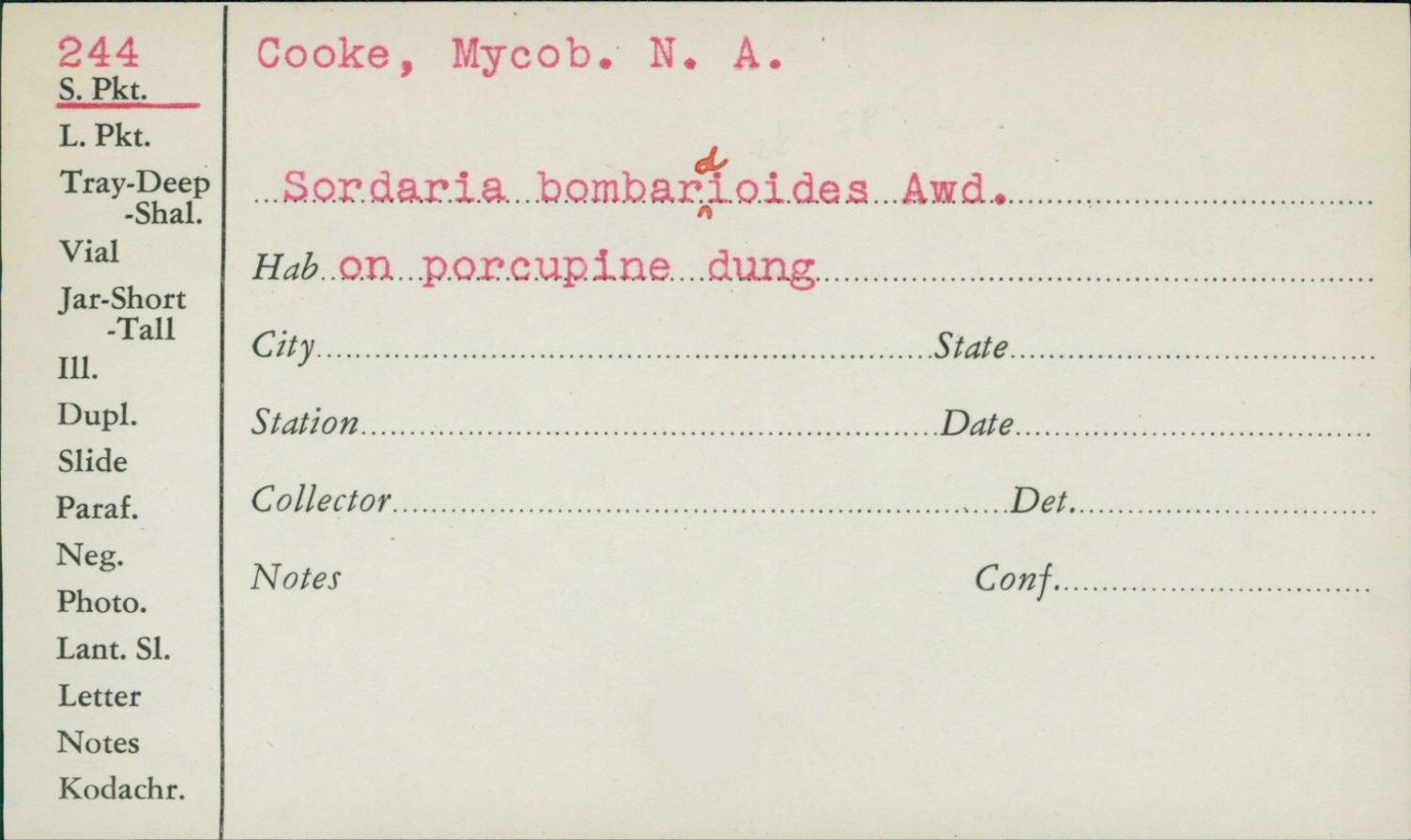 Sordaria bombardioides G. Winter