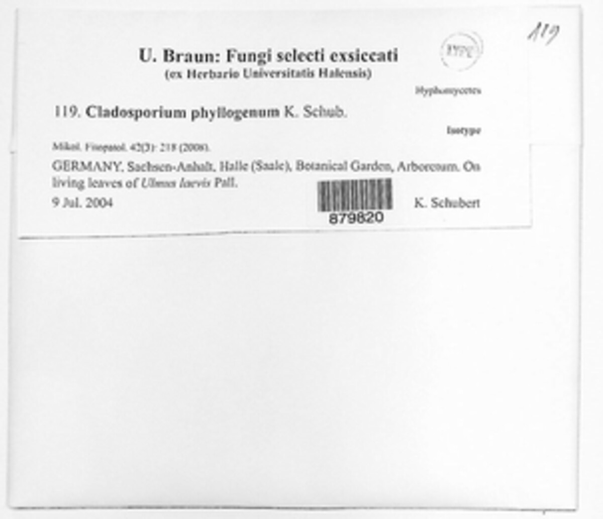 Fungi selecti exsiccati ex Herbario Universitatis Halensis