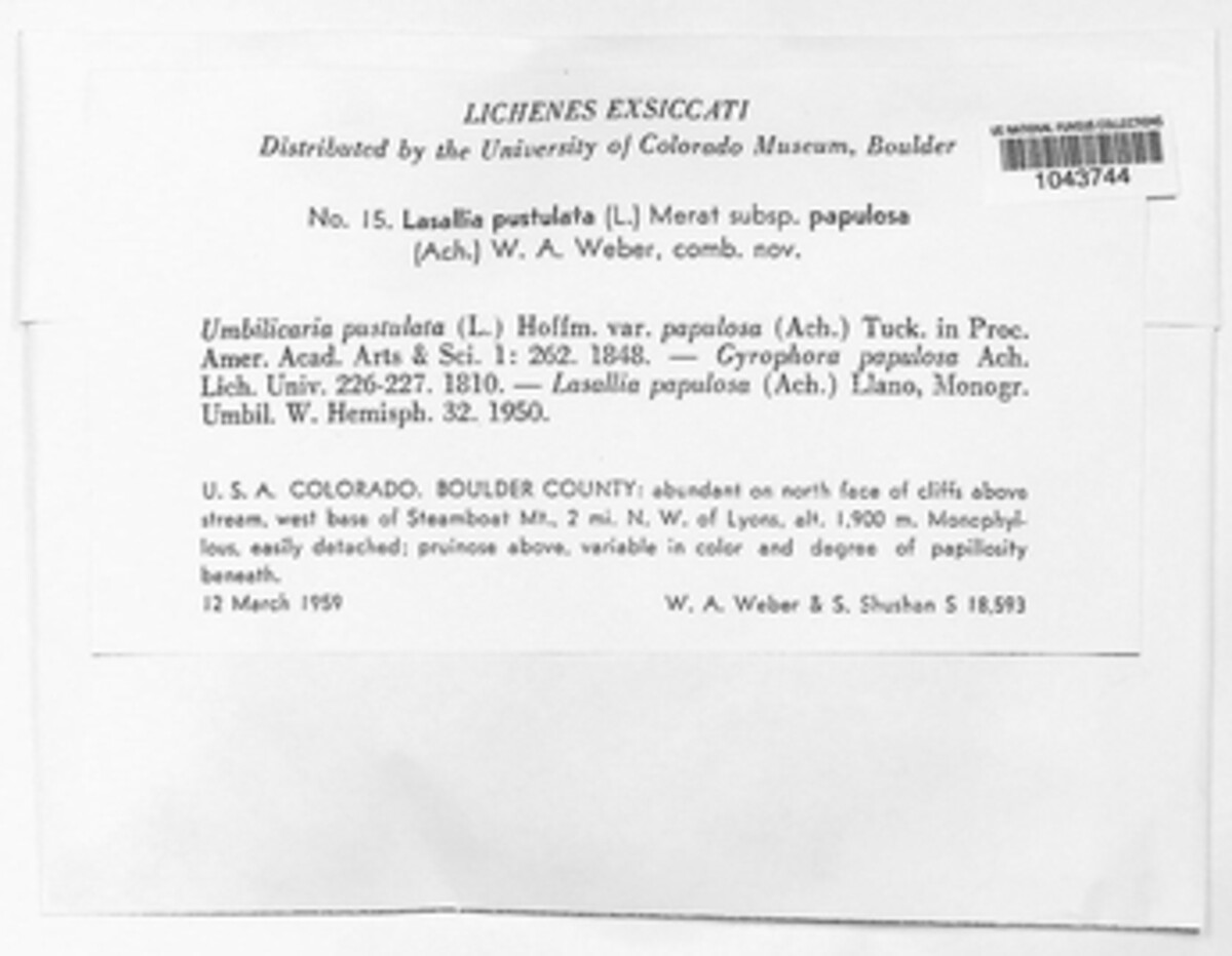 Lichenes Exsiccati distributed by the University of Colorado Museum, William A. Weber, Curator