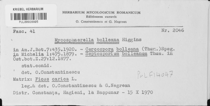 Mycosphaerella bolleana B.B. Higgins