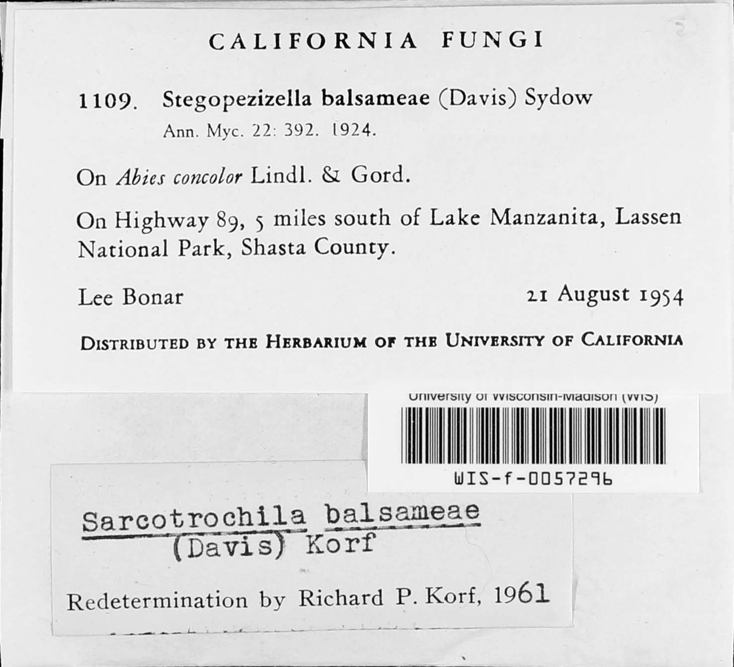 Lee Bonar s.n. 21 August 1954