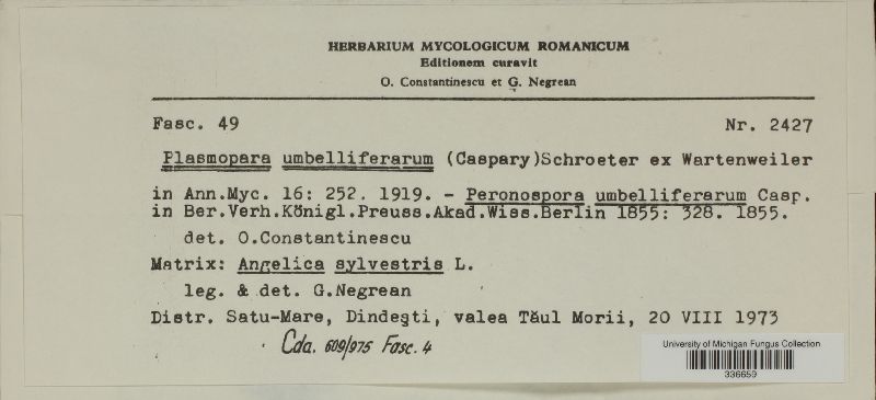 Plasmopara umbelliferarum (Caspary) J. Schröter ex Wartenweiler