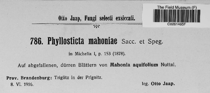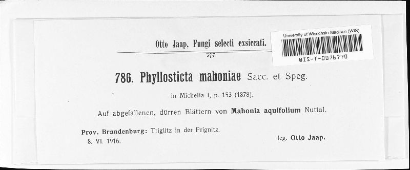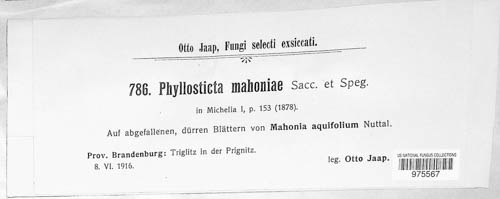 Phyllosticta mahoniae Sacc. & Speg.