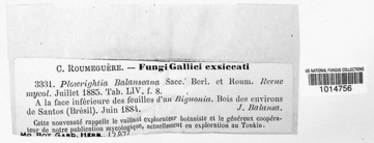 Plowrightia balansiana Sacc., Roum. & Berl.