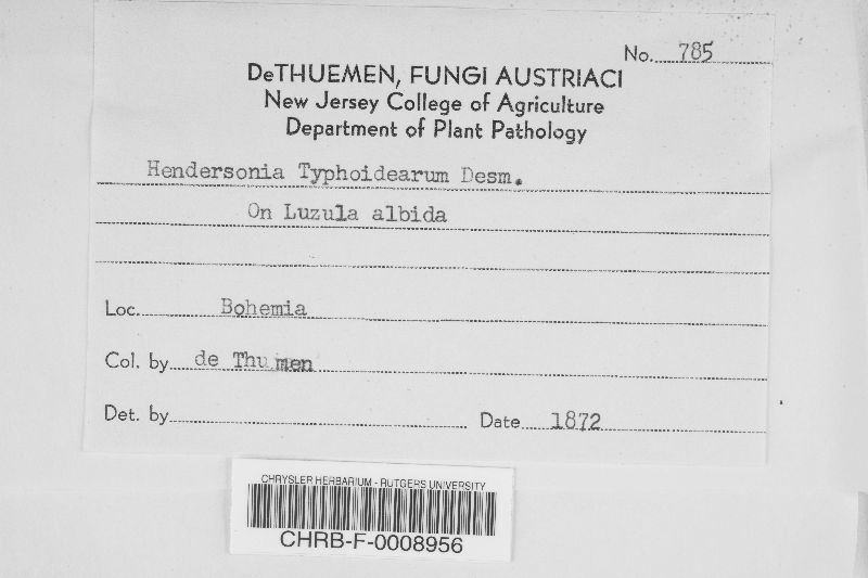 Hendersonia typhoidearum . .