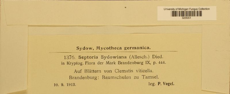 Septoria sydowiana (Allesch.) Died.
