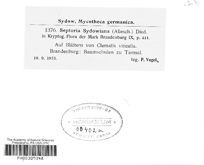 Septoria sydowiana (Allesch.) Died. (Allesch.) Died.