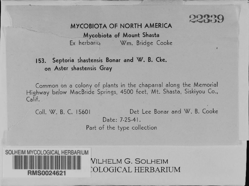 Septoria shastensis Bonar & W.B. Cooke