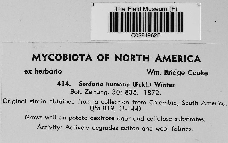 Sordaria humana (Fuckel) G. Winter (Fuckel) G. Winter