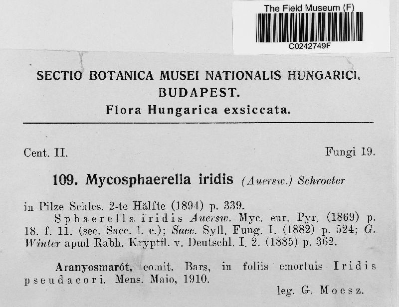 Mycosphaerella iridis (Auersw.) J. Schröt. (Auersw.) J. Schröt.