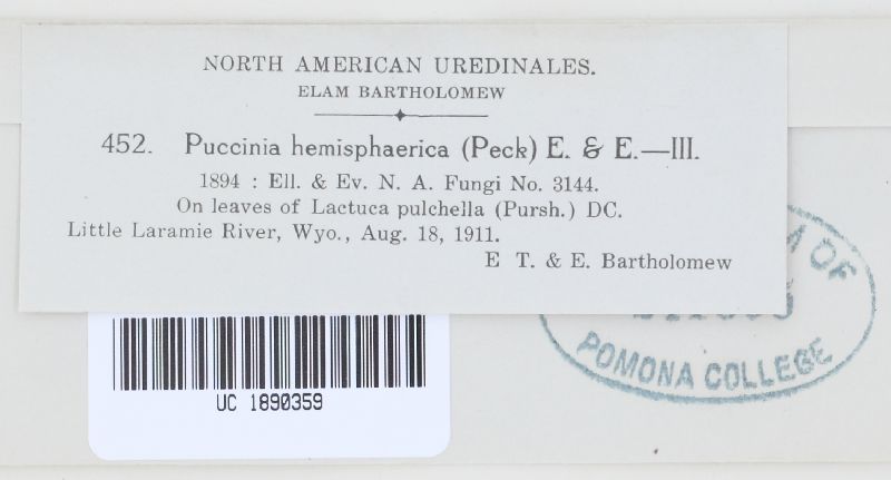 Puccinia hemisphaerica (Peck) Ellis & Everh.