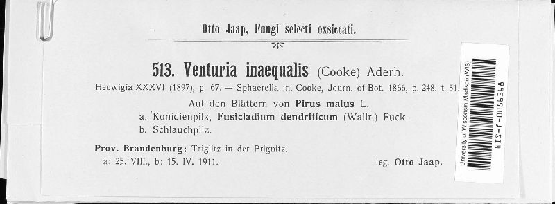 Venturia inaequalis (Cooke) G. Winter (Cooke) G. Winter