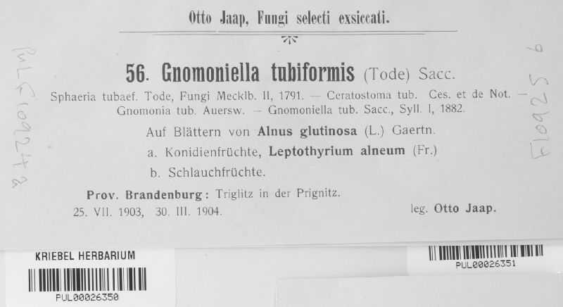 Gnomoniella tubiformis (Tode) Sacc. (Tode) Sacc.