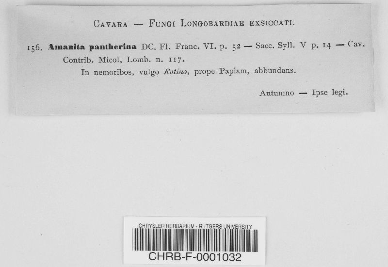 Fungi Longobardiae Exsiccati Sive Mycetum Specimina in Longobardia Collecta, et Speciebus Novis Vel Criticis, Iconibus Illustrata #156