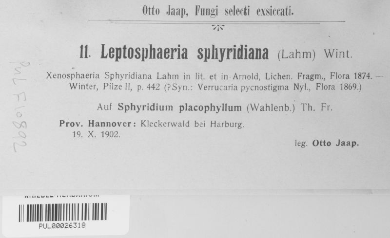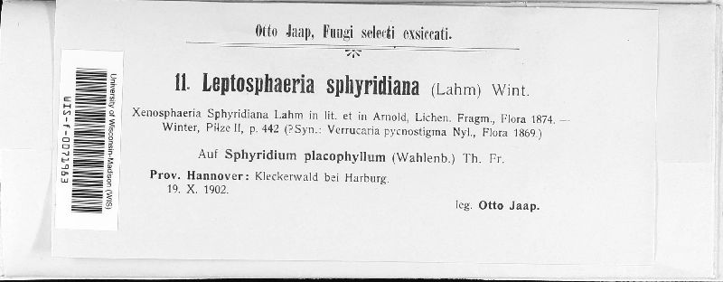 Leptosphaeria sphyridiana (J. Lahm) G. Winter