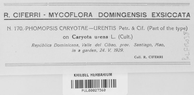Phomopsis caryotae-urentis Petr. & Cif.