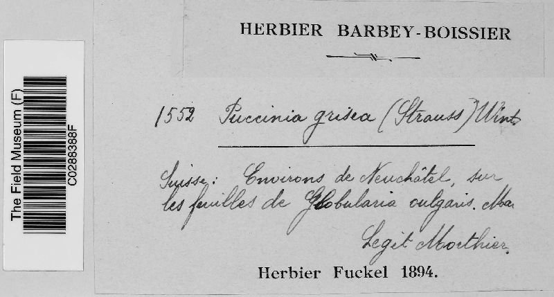 Puccinia grisea (F. Strauss) G. Winter (F. Strauss) G. Winter