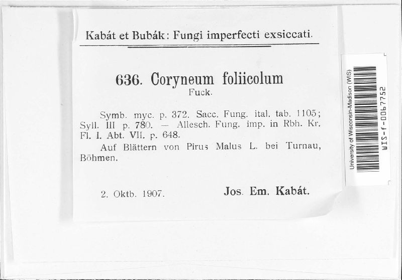 Coryneum foliicola Fuckel