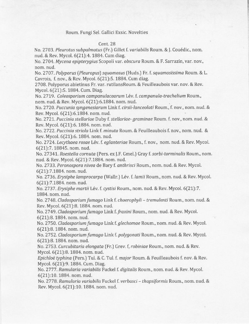 Fungi Selecti Gallici Exsiccati #Nomenclatural Novelties Cent. 28