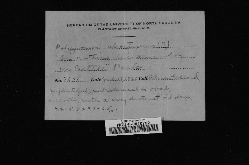 University of North Carolina at Chapel Hill Herbarium: Fungi (NCU:Fungi)
