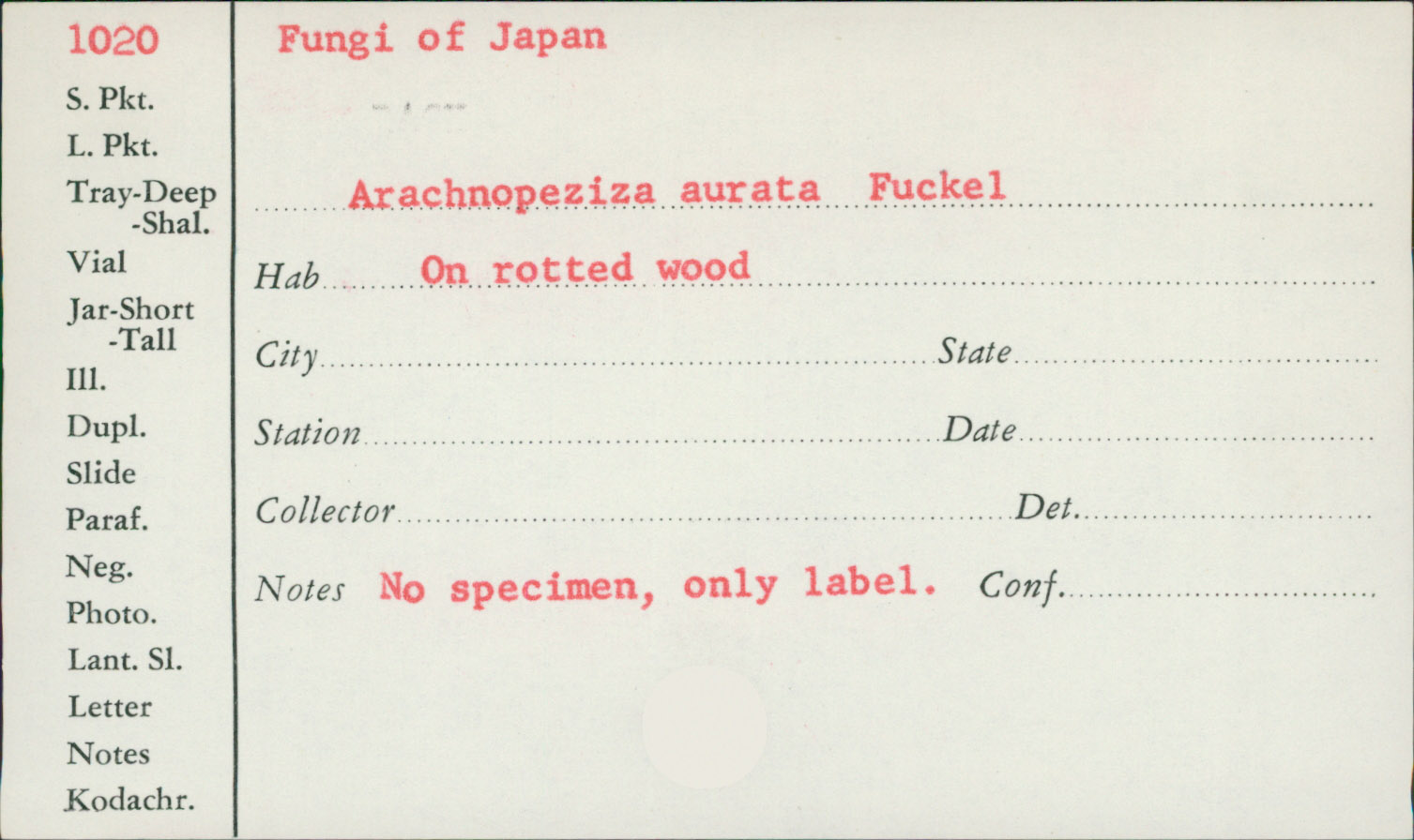 No specimen, only label.