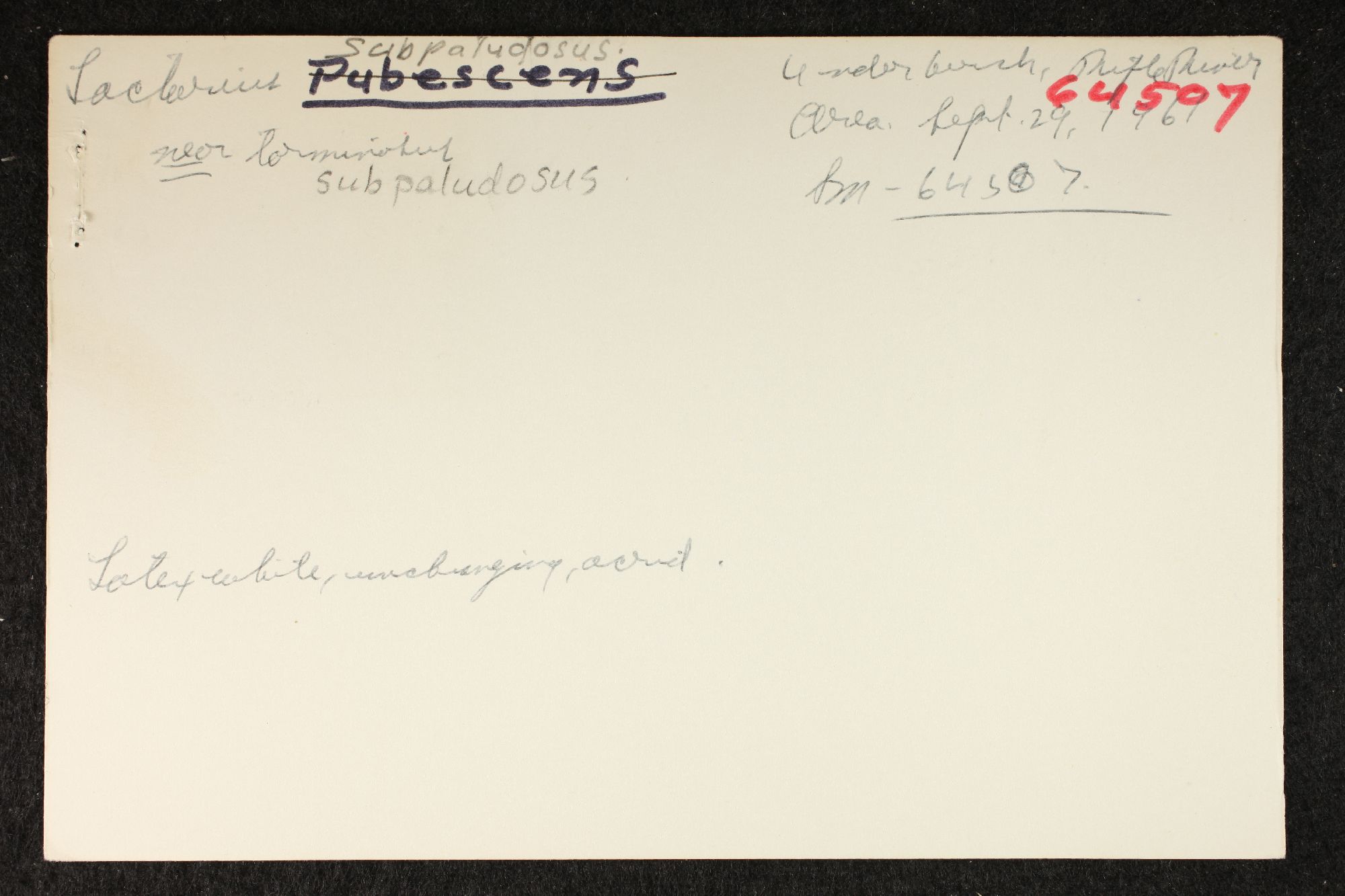 Cited in North American Species of Lactarius by L. R. Hesler and A. H. Smith North Amer. Sp. Lactarius 1979 pg. 286.
