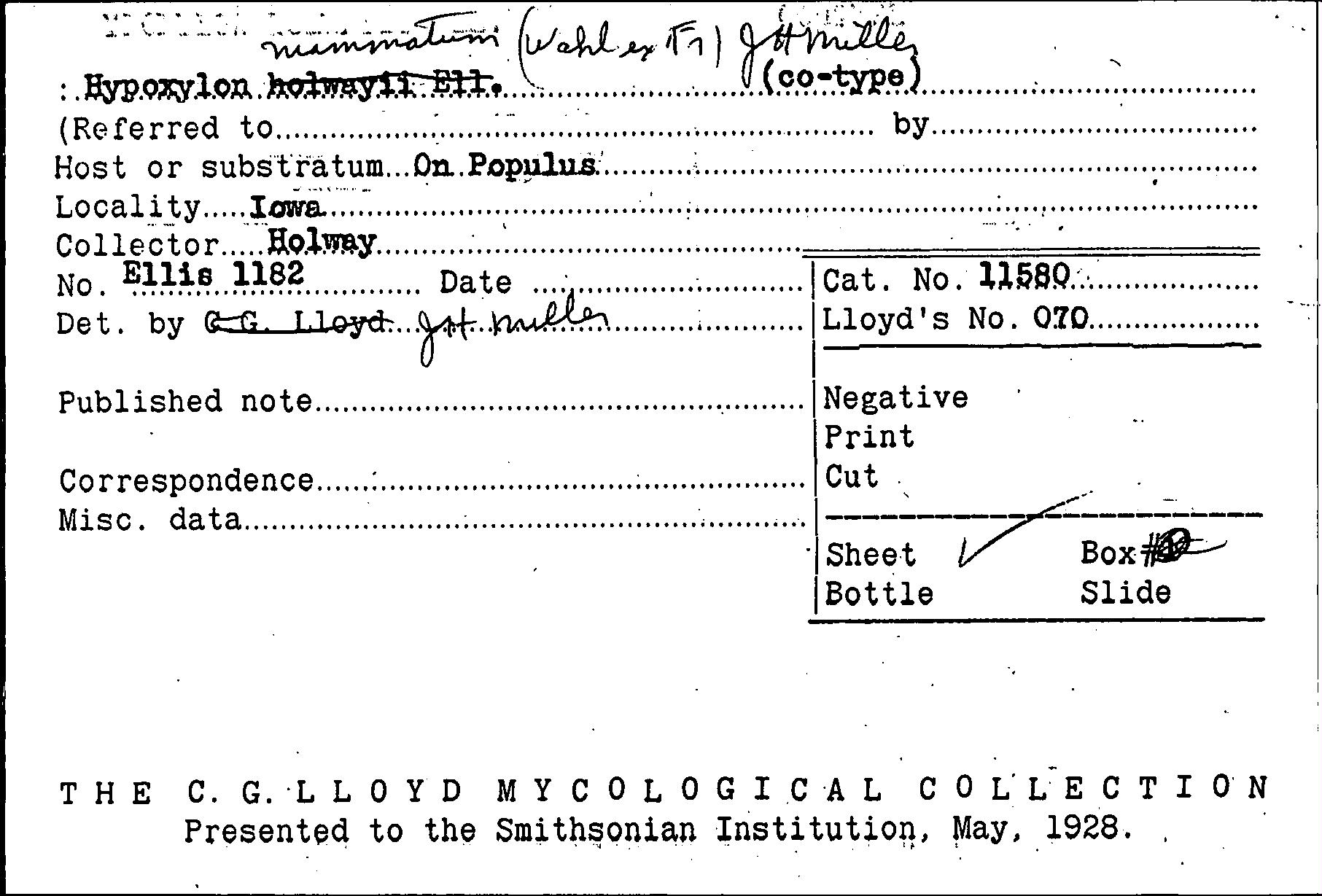 Index of the C.G. Lloyd Mycological Collection Specimens Housed at BPI (BPI)