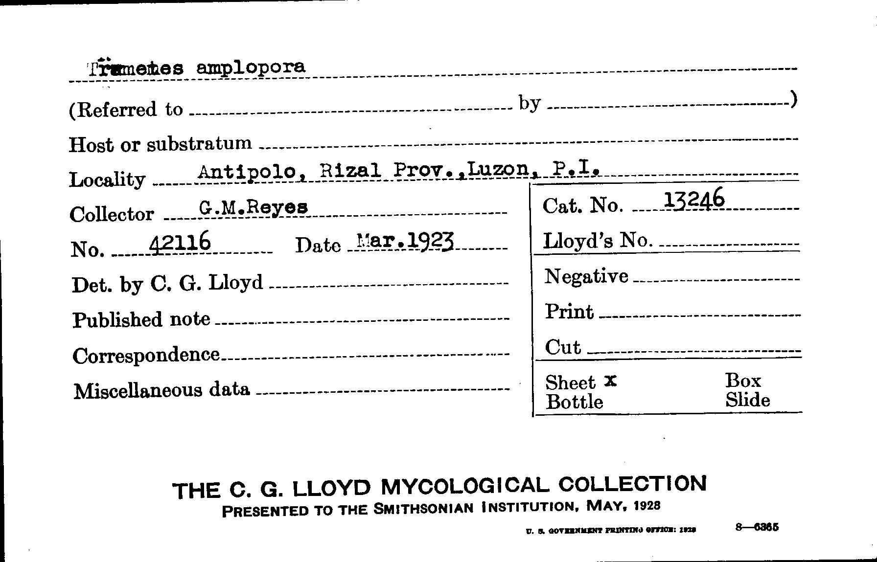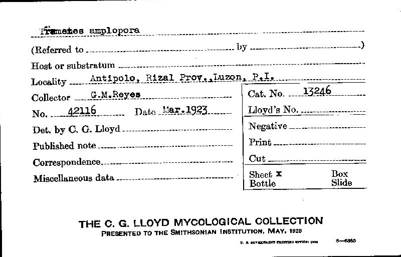 Index of the C.G. Lloyd Mycological Collection Specimens Housed at BPI (BPI)