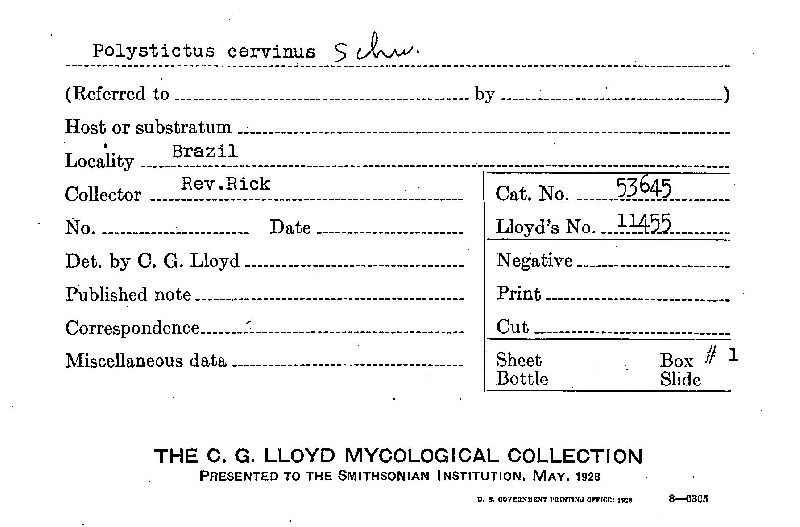 Index of the C.G. Lloyd Mycological Collection Specimens Housed at BPI (BPI)