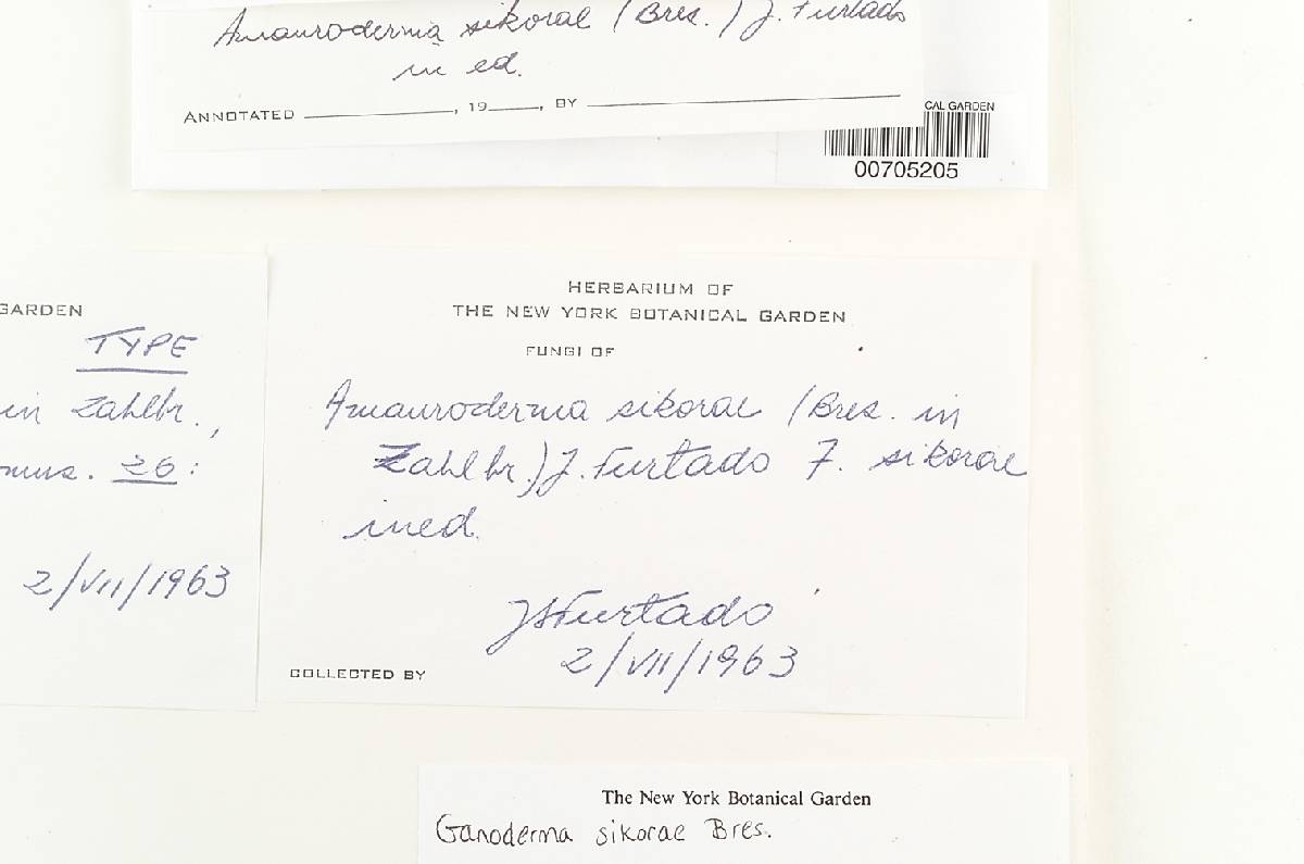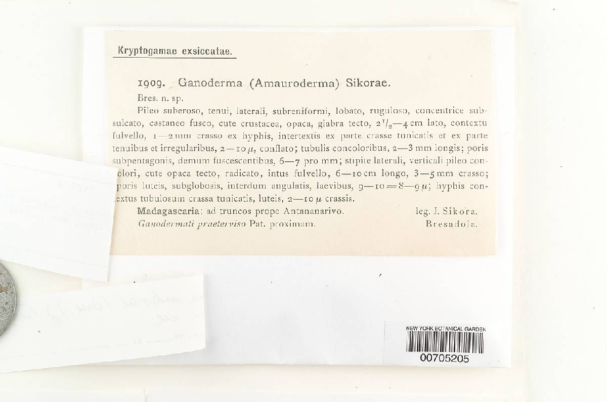 as Ganoderma (Amauroderma) sikorae Bres. on label, name ver by J. S. Furtado 1963